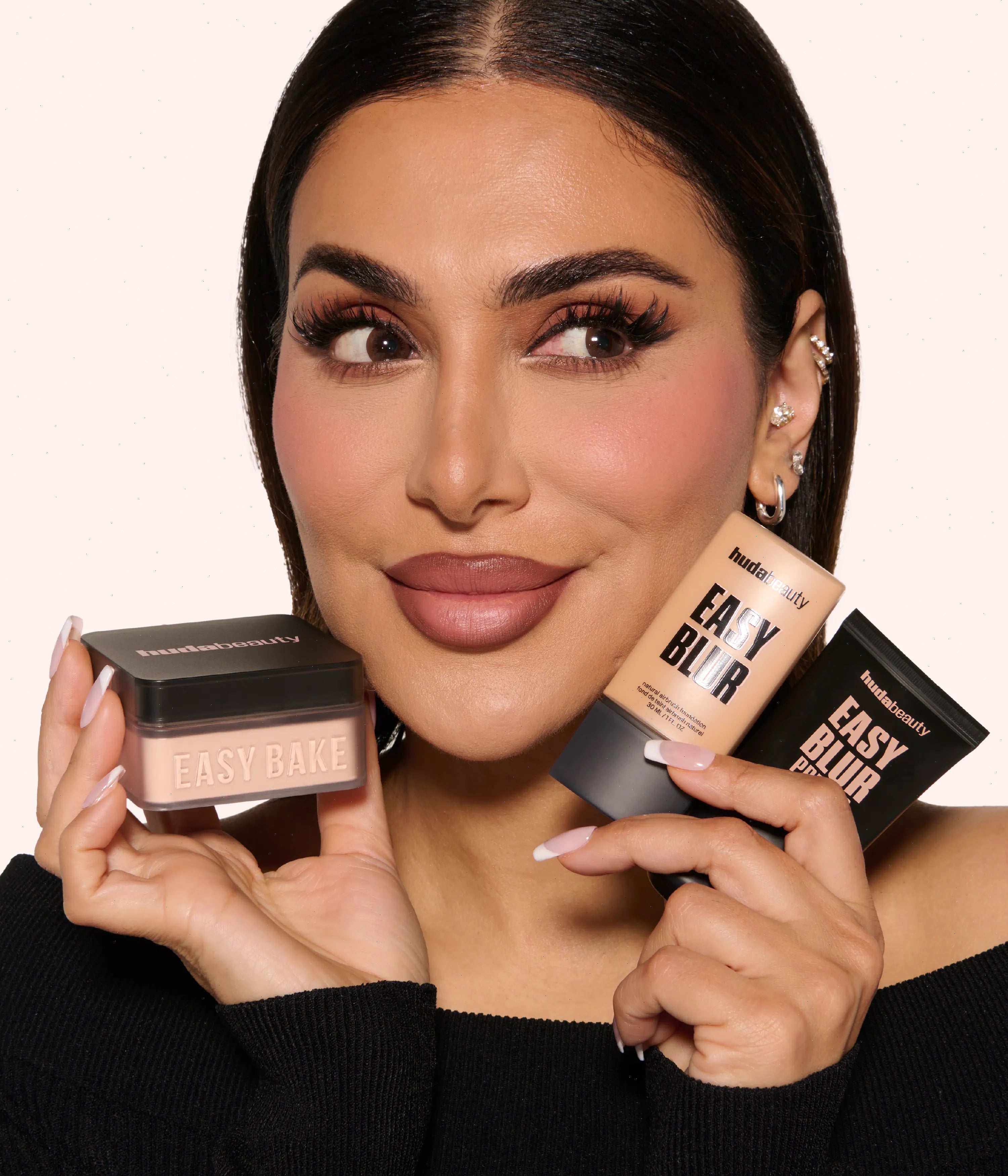 Easy Bake: The Huda Beauty Easy Bake Loose Powders are inspired by Huda’s strong belief that the technique of baking is a key step to a flawless finish while ensuring long-lasting, melt-proof makeup. This extremely light and silky texture blends seamlessly into the skin leaving it matte with a hint of sheen, for a luminous finish that controls shine throughout the day. The powders work to subtly color correct and highlight different contours of the face, leaving a translucent veil of color on your skin. The Easy Bake powder comes in 9 shades curated for all skin tones.